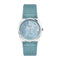 This watch features a round, solid stainless steel case housing a white Mother-of-Pearl dial with rose gold coloured batons and a date display, enclosed by ultra scratch resistant sapphire crystal glass.