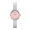 Fitted with an ion plated gold stainless steel bark finish Milanese bracelet featuring a self adjustable sliding clasp.