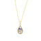 9ct yellow gold Derbyshire Blue John single sided small pendant. Beautifully hand crafted in Sheffield, England. In a teardrop shape, and set with a unique piece of Derbyshire Blue John. Set on an 18" gold plated sterling silver fine curb chain.
