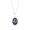 Sterling silver Derbyshire Blue John reversible pendant and chain. Featuring an oval shape pendant, set with a unique piece of Derbyshire blue john on the front, and the back. Supplied on an 18" curb chain, with a bolt ring fasten. Beautifully handcrafted in Sheffield, England.