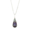 Sterling silver Derbyshire Blue John reversible pendant and chain. Featuring an elongated pear shape pendant, set with a unique piece of Derbyshire blue john on the front, and the back. Supplied on an 18" curb chain, with a bolt ring fasten. Beautifully handcrafted in Sheffield, England.