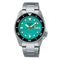 The 4R36 movement of this Seiko watch is visible through the viewing window which is positioned on the back of the watch.