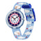 This Flik Flak watch has a quartz battery movement and is 30m water resistant.