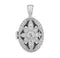 Ladies sterling silver cubic zirconia star pattern locket with a cut out patterned back. Comes complete with a 18" sterling silver fine curb chain.