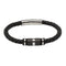 Unique and Co mens brown leather braided bracelet with carbon fibre and steel elements. This mens bracelet measures 21cm and fastens with a stainless steel pusher clasp that features the Unique & Co logo.