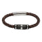 Unique and Co mens black leather braided bracelet with carbon fibre and steel elements. This mens bracelet measures 21cm and fastens with a stainless steel pusher clasp that features the Unique & Co logo.