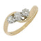 This beautiful second-hand ring is 18ct yellow gold, and features a centre round brilliant cut diamond, in a white gold claw setting, and two tiny delicate round brilliant cut diamonds. The diamond clarity for this ring is SI 1, the diamond colour is I, and the total diamond carat weight is 0.25cts. The 18ct yellow gold band measures 2.2mm.