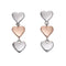 Fiorelli sterling silver open heart shaped drop earrings. Each earring is adorned with rose gold and cubic zirconia detail and fits through the ear with a hook.