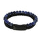 Unique & Co 2 row mens bracelet features brown tigers eye beads and black woven leather with a matt black stainless steel snap clasp featuring the 'Unique' branded logo.