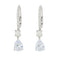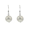 Ladies freshwater pearl drop earrings. These ladies earrings each feature an oval white freshwater pearl measuring 7mm wide x 8mm long, set in a curved half hoop setting featuring five cubic zirconias.