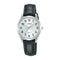 Fitted with a brown leather strap this Lorus ladies watch measures 14mm wide and fastens with a gold plated stainless steel buckle.
