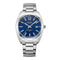 This watch is fitted with a brushed finish stainless steel link bracelet, that fastens with a folding butterfly clasp