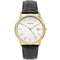 Classic and practical Sekonda mens watch with a 37mm polished gold tone case and a clear white dial. The dial features gold tone classic baton hour markers and a date window positioned at 3 o'clock.
