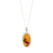 This unique amber sterling silver pendant is set in a fancy design. The pendant comes with an 18" sterling silver curb chain.