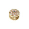 We have for sale a genuine 14ct gold rare retired round charm. It is set with multiple pink, white and blue stones in a very pretty pattern. The sides have cut out flower designs. Correctly marked ALE 585.