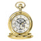 From the new Rotary Heritage Collection, this classic Rotary mens pocket watch features a polished gold plated PVD double half hunter stainless steel case, showcasing a beautiful dial with gold tone Roman Numerals, that is partially skeletonised, allowing for a glimpse into the mechanical inner workings.