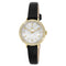 The black leather strap measures 10mm wide and fastens with a polished gold plated buckle.