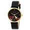 The black leather strap measures 10mm wide and fastens with a polished gold plated buckle.