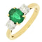 The star of this piece is a beautiful 1.50ct oval emerald, at the centre of a diamond cluster. Twelve sparkling diamonds totalling 0.54ct crown the forest green stone, to enhance the rich colour. The gemstones are secured with 18ct white gold claws, and sit at the head of an 18ct yellow gold band, which tapers delicately.