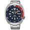 With a clear black colour dial with luminous hour markers and hands, and a blue and red uni-directional bezel. A super tough steel bracelet finishes the look.