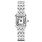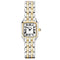 Sekonda 40555 ladies watch featuring a square cushion shaped case with a white textured dial and roman numeral hour markers. This watch is fitted with a two tone rose tone and silver tone bracelet and has a snap fasten.