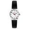 The black leather upper plain strap measures 14mm wide and fastens with a stainless steel buckle.