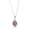 Sterling silver necklace, handmade with real flowers by Shrieking Violet, features a large tear drop shaped pendant with mixed purple colour flowers (including purple verbena and forget me not) that measures 36mm x 20mm.