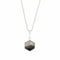 Derbyshire Blue John reversible pendant and chain. Featuring a hexagonal shape, set with Derbyshire Blue John on the front and Whitby Jet on the back. This pendant is set on an 18" curb chain, with a bolt ring fasten. Beautifully handcrafted in Sheffield, England.