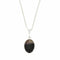 Derbyshire Blue John reversible pendant and chain. Featuring an oval shape, set with Derbyshire Blue John on the front and Whitby Jet on the back. This pendant is set on an 18" curb chain, with a bolt ring fasten. Beautifully handcrafted in Sheffield, England.