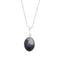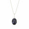 Derbyshire Blue John reversible pendant and chain. Featuring an oval shape, set with Derbyshire Blue John on the front and Whitby Jet on the back. This pendant is set on an 18" curb chain, with a bolt ring fasten. Beautifully handcrafted in Sheffield, England.