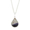 Derbyshire Blue John reversible pendant and chain. Featuring a round shape, set with Derbyshire Blue John on the front and Whitby Jet on the back. This pendant is set on an 18" curb chain, with a bolt ring fasten. Beautifully handcrafted in Sheffield, England.