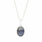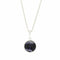 Derbyshire Blue John reversible pendant and chain. Featuring a round shape, set with Derbyshire Blue John on the front and Whitby Jet on the back. This pendant is set on an 18" curb chain, with a bolt ring fasten. Beautifully handcrafted in Sheffield, England.