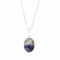 Shop our Derbyshire Blue John medium sized reversible pendant. Featuring an oval shape, set with Derbyshire Blue John on the front and Malachite on the back. This pendant is set on an 18" curb chain, with a bolt ring fasten. Beautifully handcrafted in Sheffield, England.