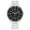 Tommy Hilfiger 1792202 mens watch from the Ocenic Collection, features a round brushed and polished stainless steel case, with a fixed blue bezel, and a blue dial. This watch is fitted with a brushed and polished stainless steel bracelet that fastens with a push button deployment clasp.