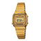 Casio A164WA-1VES men's chrome finish bracelet watch has a stainless steel back and a black digital dial.