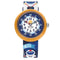 This Flik Flak watch has a quartz movement and is 30m water resistant.