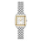 BOSS Watches ladies watch from the Mae Petite collection. Featuring a two tone stainless steel square case, and a white sunray dial. This watch is fitted with a polished stainless steel bracelet, with a push deployment folding clasp.