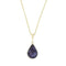 9ct yellow gold Derbyshire Blue John double sided pendant. Beautifully hand crafted in Sheffield, England. In a pear shape, and set with a unique piece of Derbyshire Blue John on the front, and Whitby Jet on the back. Set on a 20" gold plated sterling silver belcher chain.
