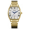 The exhibition caseback reveals the movement in motion, reinforcing the watch’s focus on heritage craftsmanship. A polished gold plated stainless steel 9-link bracelet completes the design, giving it a smooth, articulate presence on the wrist.